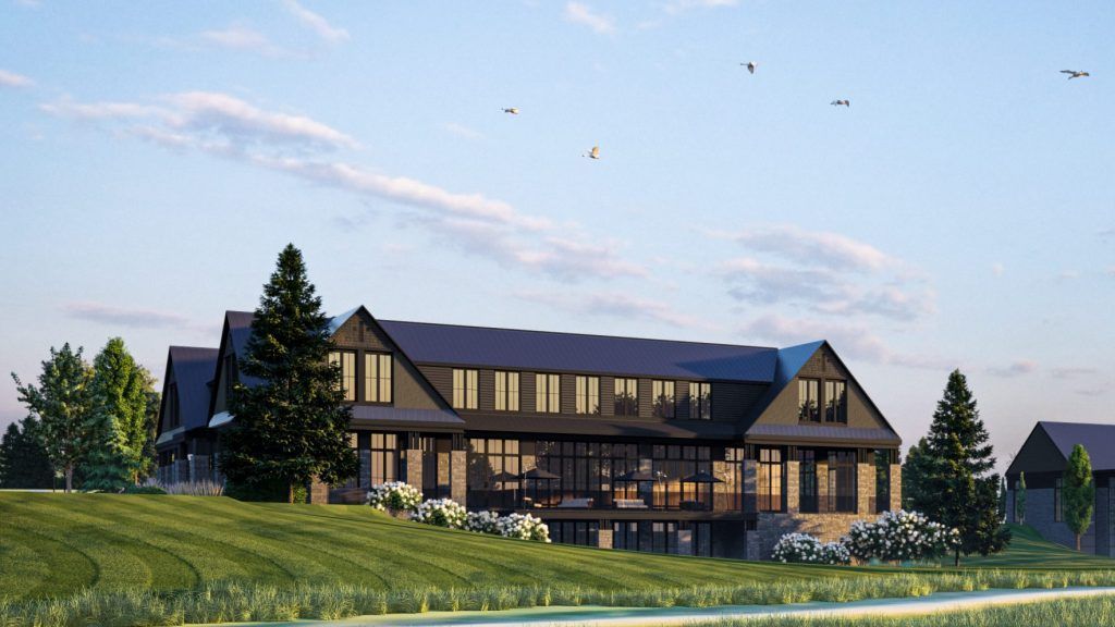 An artist 's impression of a large apartment building at night